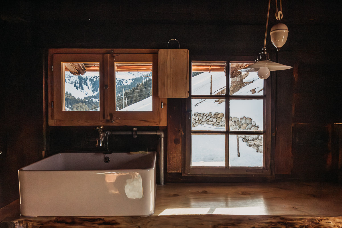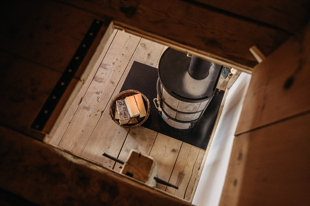 - Es hat wenige Lichtquellen, eine Lampe beim Esstisch, eine beim Schützstein und eine beim Holzherd. Ansonsten wird von uns für jede Person eine aufladbare Stirnlampe zur Verfügung gestellt