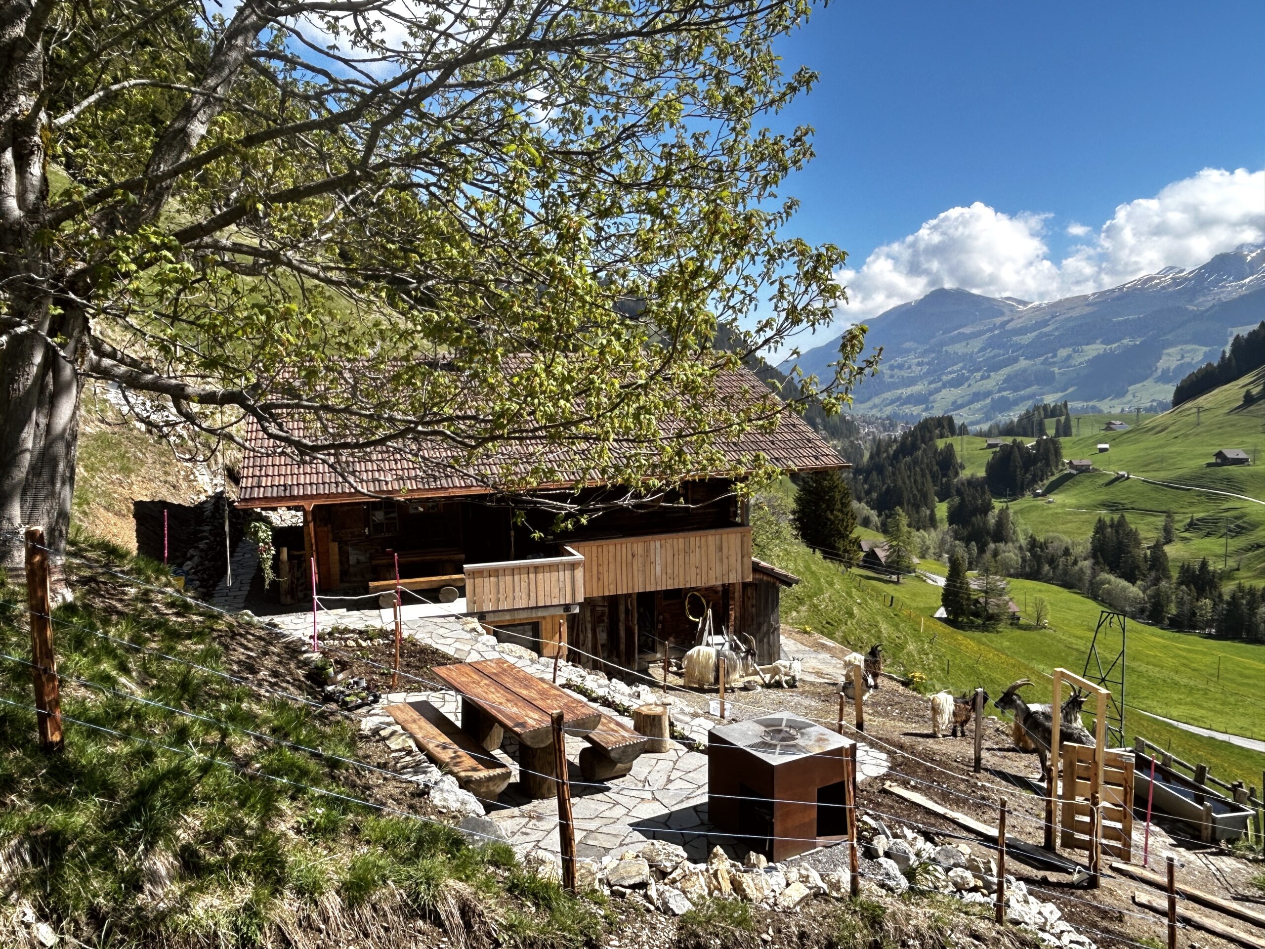 Unser Weidhaus liegt zuhinterst im Engstligtal in der Bäuert Gilbach in Adelboden auf 1500 m.ü.M. Das Gilbach wird von den Einheimischen scherzhaft auch «Das Tal der heulenden Winde» genannt. Wenn der Föhn im Herbst so richtig durch die Tannen bläst, macht es seinem Spitznamen alle Ehre.